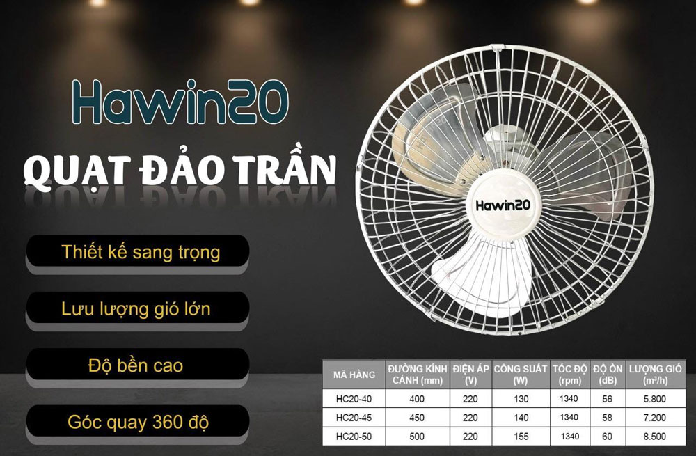 Thông số kỹ thuật Quạt đảo trần công nghiệp Hawin20 :