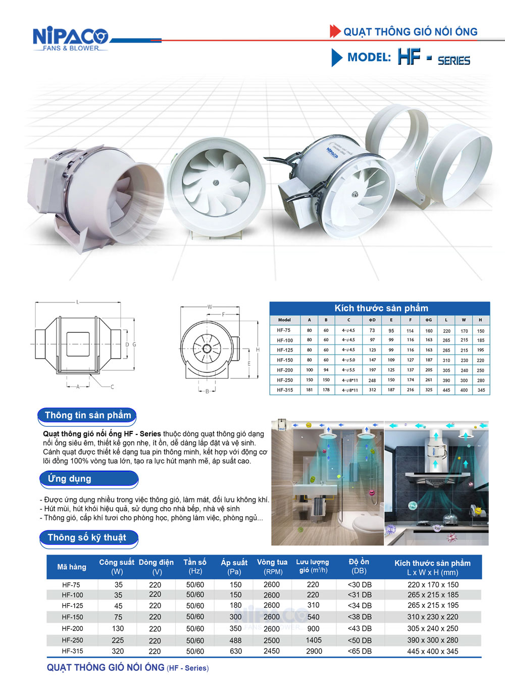 Quạt thông gió nối ống Nipaco HF-150 D150 là giải pháp tối ưu cho mọi hệ thống thông gió công nghiệp và dân dụng, giúp không gian của bạn luôn mát mẻ, trong lành và dễ chịu.